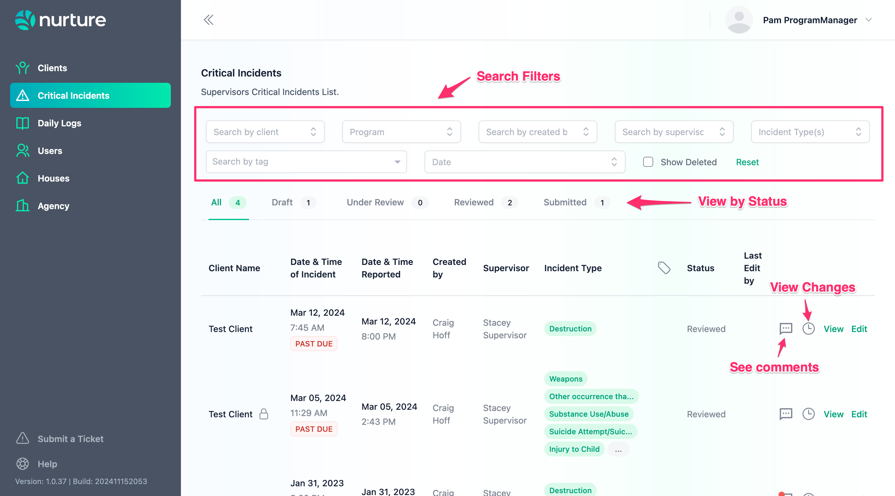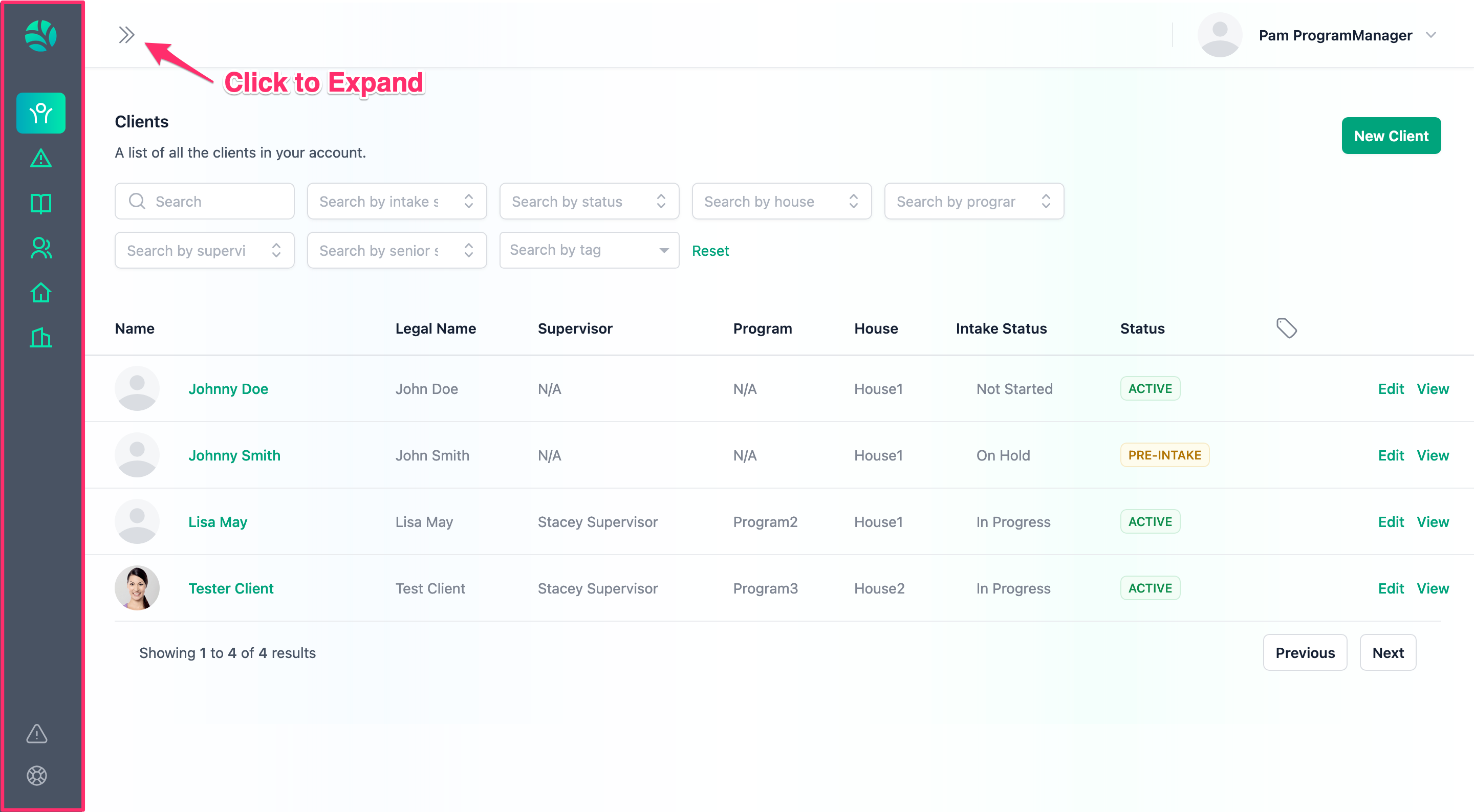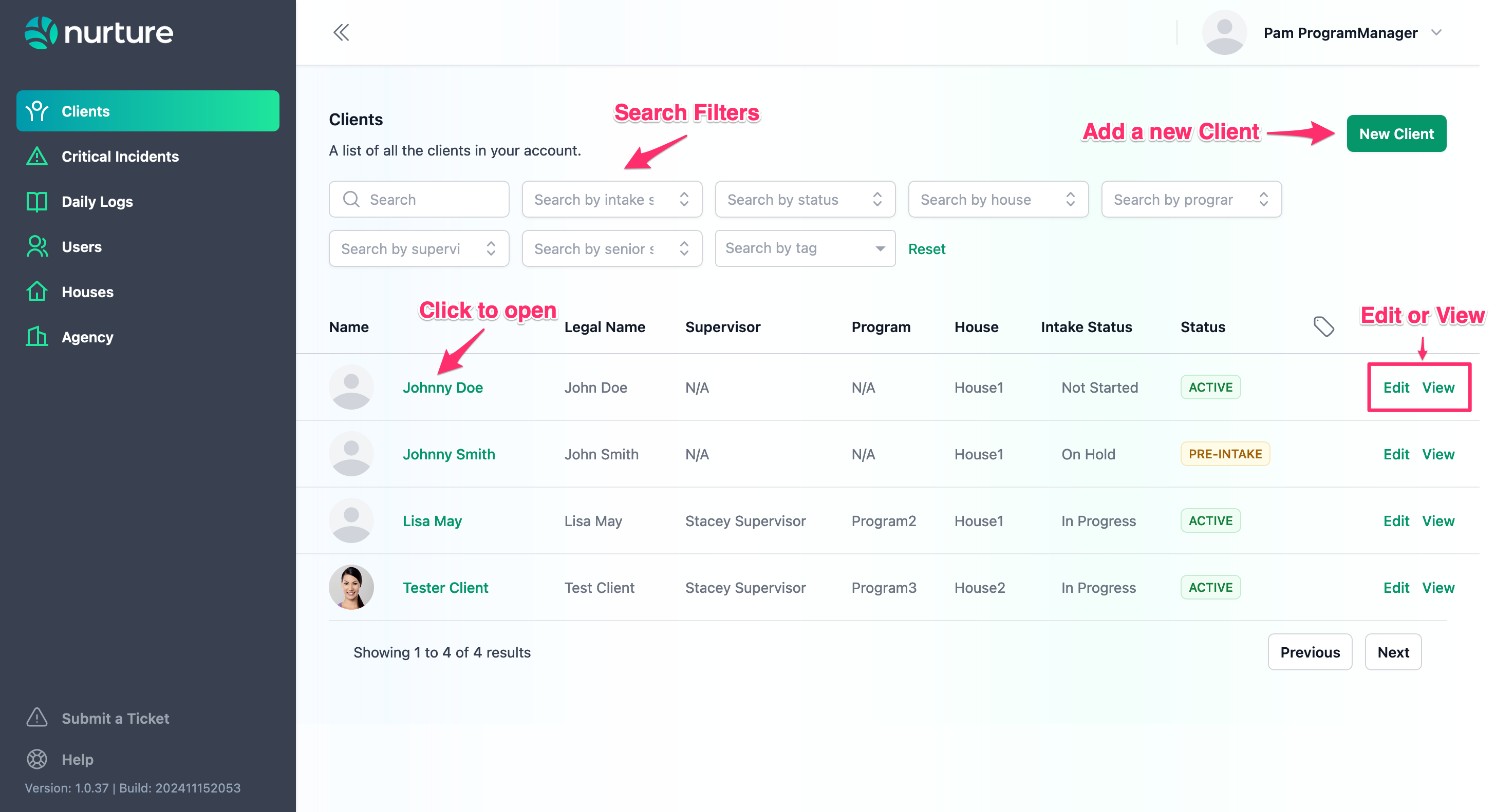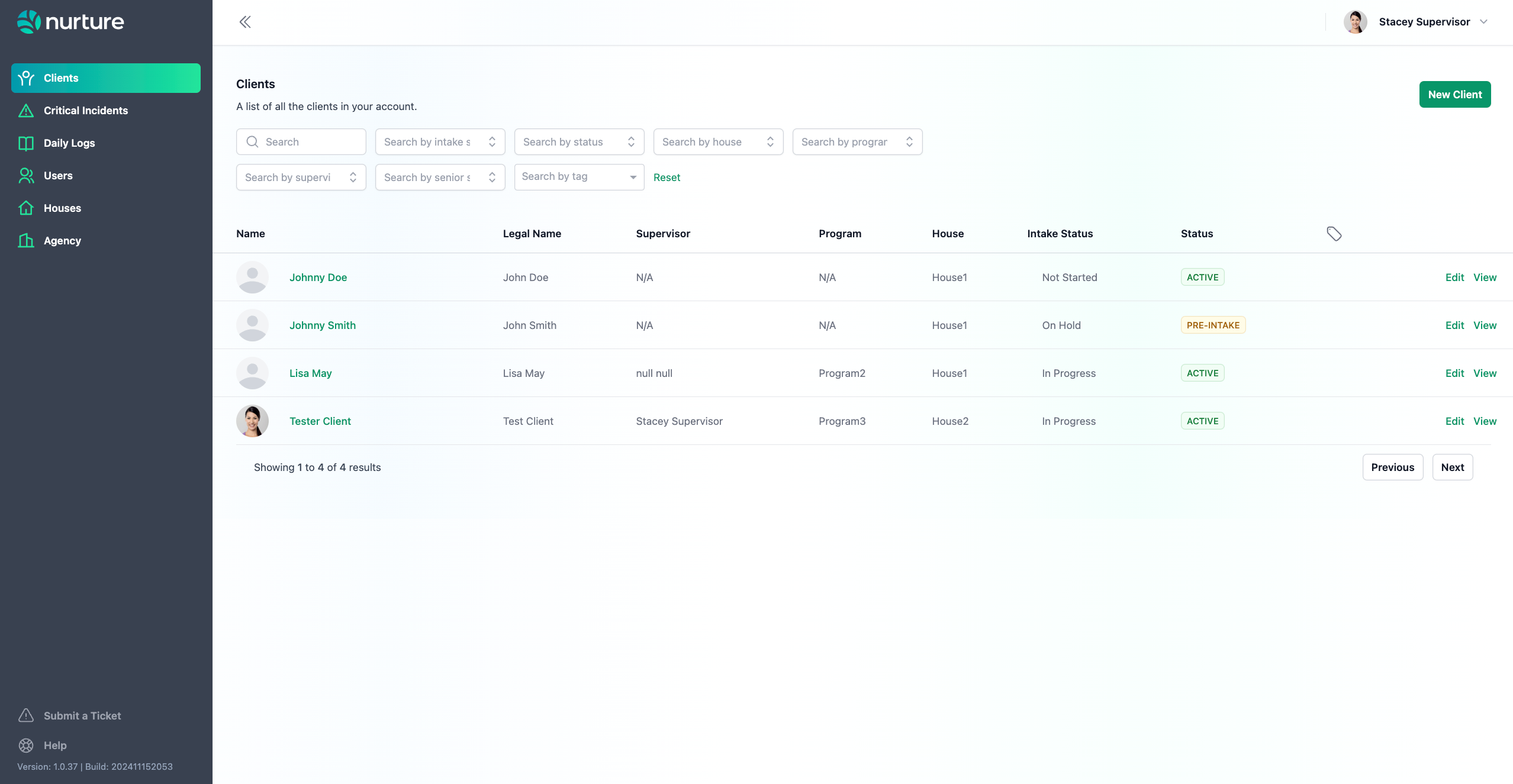 Your Nurture Home page is a page containing the list of Clients in your agency. This is the same for all User Roles.