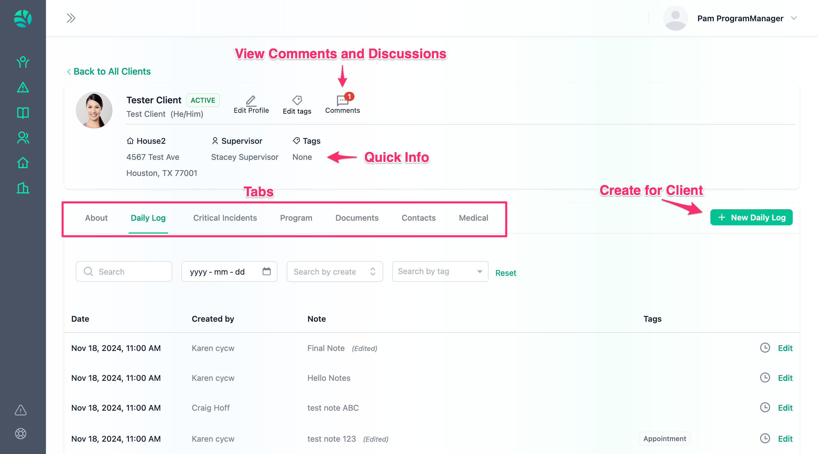If you are a direct support/frontline staff and your screen is blank, it means you haven't been assigned any clients yet. Your supervisor/agency administrator provides access per client - please reach out to them directly to provide you with the access you need.