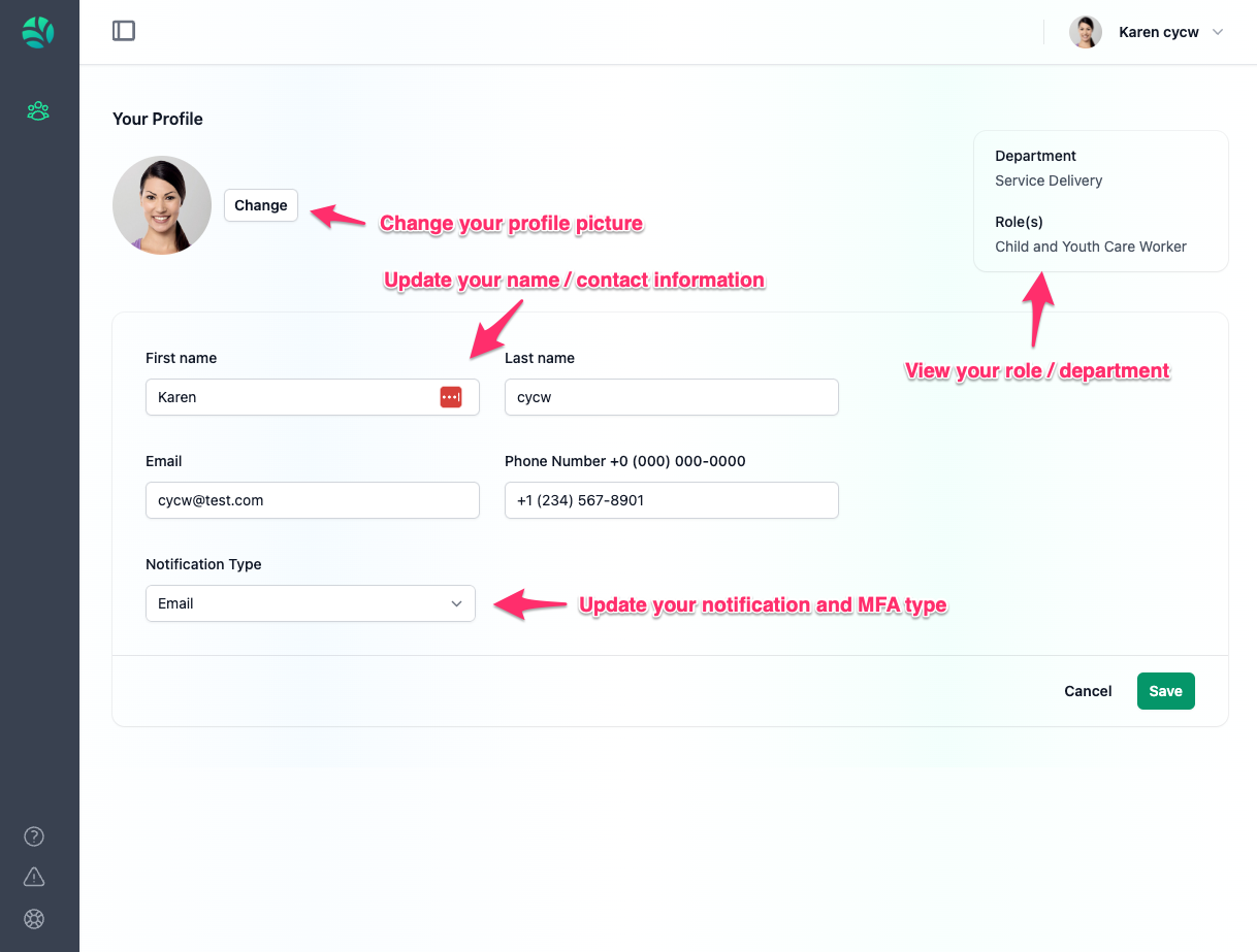 Within your profile, you can update your contact information as well as choose the MFA notification type you'd like to receive whenever you sign in.